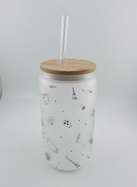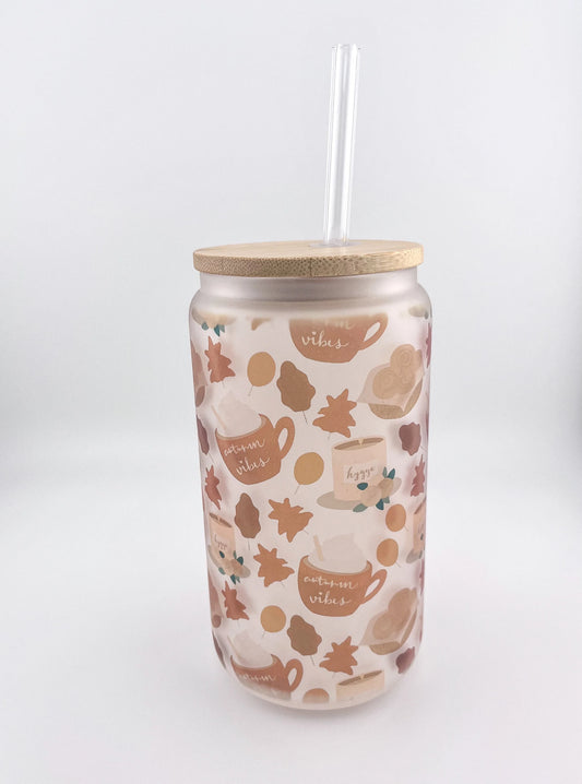 16oz Fall Glass Can with Bamboo Lid and Straw