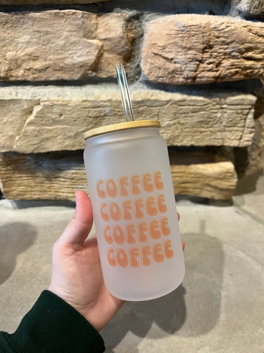 Leopard Print Frosted Ice Coffee Cup, 16oz Glass Soda Beer Can with Bamboo Lid and Straw, Gift for Her, Cheetah Print Tumbler, Glass Libbey