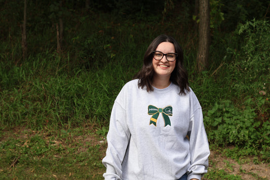 Green and Gold Bow Embroidered Crewneck Sweatshirt