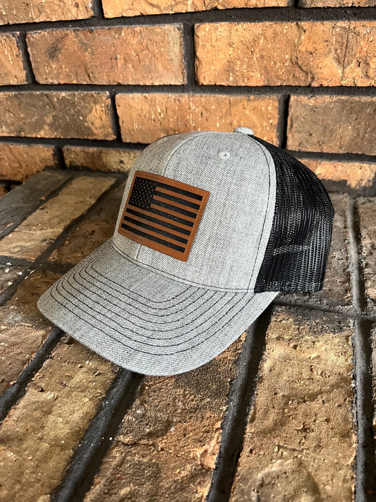 Copy of Trucker Hat with Engraved Leather Patch - American Flag