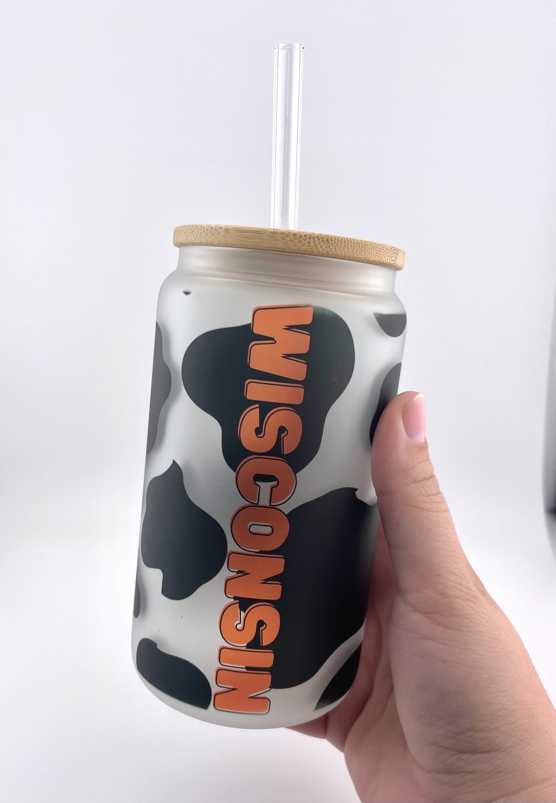 Wisco sublimated 16oz glass beer can glass with bamboo lid and glass straw