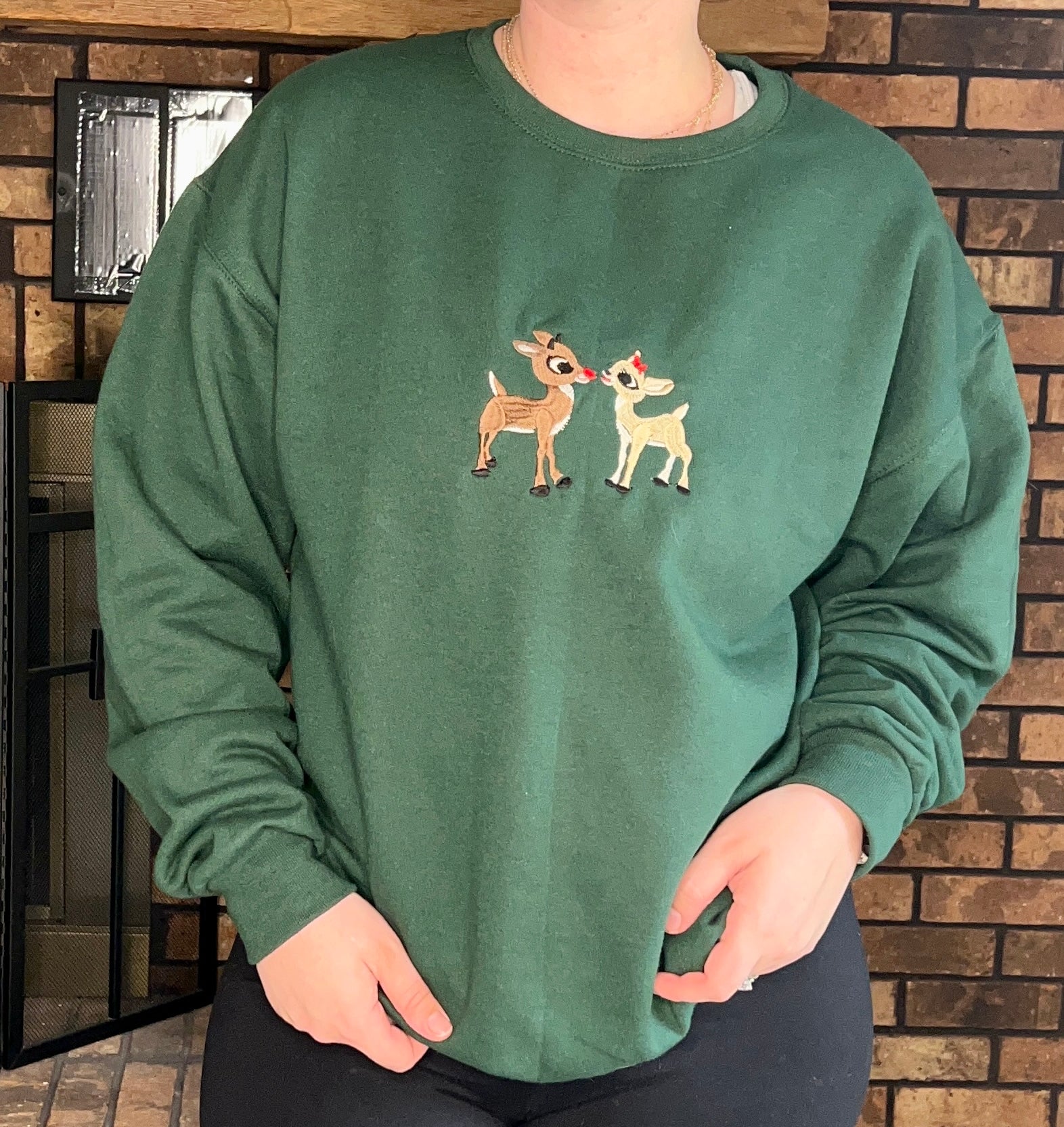Embroidered Rudolph Crewneck Sweater