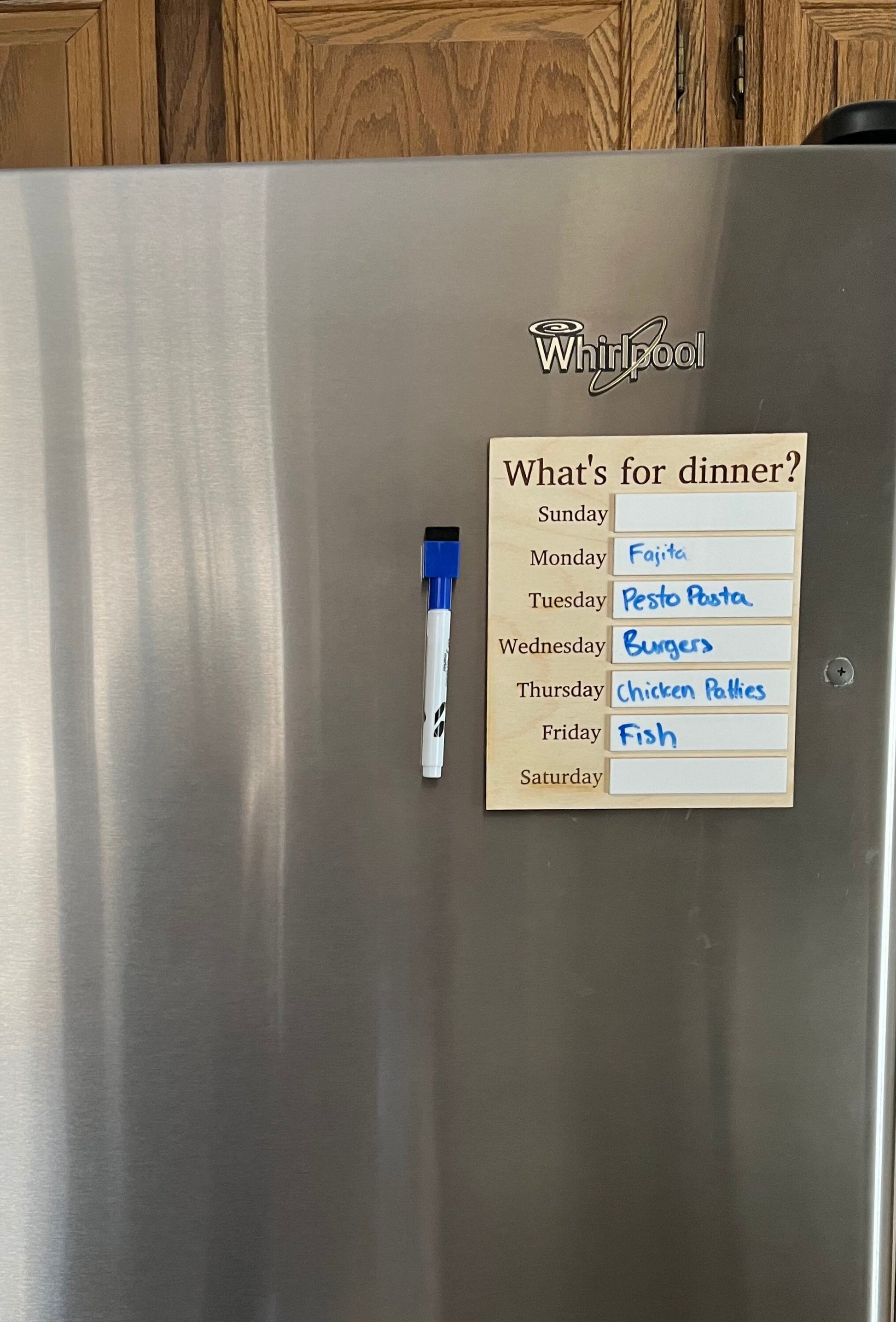 Dry erase weekly dinner fridge menu is the perfect tool to organize your weekly meals!